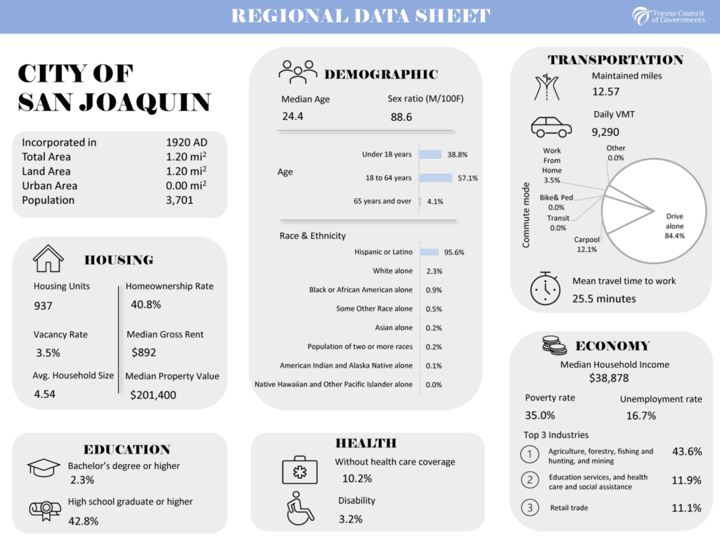 The city of San Joaquin is a farming community located thirty miles west of Fresno and was incorporated on February 14, 1920. Cotton is the major commodity in the area, along with various other crops. San Joaquin will soon be a center link, as Manning Avenue now connects Highway 99 with Interstate 5. This connection will attract business and promote growth in the area.